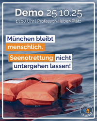 Demo „München bleibt menschlich – Seenotrettung nicht untergehen lassen“ am 25.10.2025 ab 14 Uhr am Professor-Huber-Platz.
