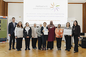 Für das Projekt „Ehrenamtliche Begleitung und Unterstützung älterer pflegebedürftiger Menschen mit Zuwanderungsgeschichte und ihrer Angehörigen“ erhielt der Nürnberger Verein HeHanI e.V. (Helfende Hand International) einen der beiden dritten Preise. In der Begründung der Vergabejury heißt es: „Das Projekt besteht aus zwei miteinander verknüpften Angeboten, dem „Helferkreis“ und den „Internationalen Angehörigentutoren“. Im Helferkreis engagieren sich ehrenamtliche Helferinnen aus verschiedenen Herkunftsländern, die ältere und pflegebedürftige Menschen regelmäßig besuchen und unterstützen. Sie schenken Zeit, Gesellschaft und praktische Hilfe – sei es beim Einkaufen, bei Arztbesuchen, bei Gesprächen oder bei alltäglichen Anliegen. Durch ihre Sprachkenntnisse und kulturelle Nähe schaffen sie Vertrauen und helfen, sprachliche und kulturelle Barrieren im Kontakt mit Pflegediensten, Behörden oder Ärzten zu überwinden. Die Internationalen Angehörigentutoren richten sich an Menschen, die in ihren Familien ältere Angehörige pflegen oder unterstützen. Diese Tutoren werden geschult, um Pflegewissen, rechtliche Informationen und Unterstützungsmöglichkeiten in ihrer jeweiligen Muttersprache weiterzugeben.